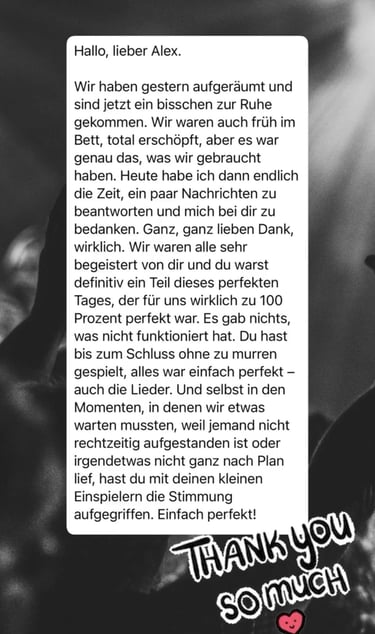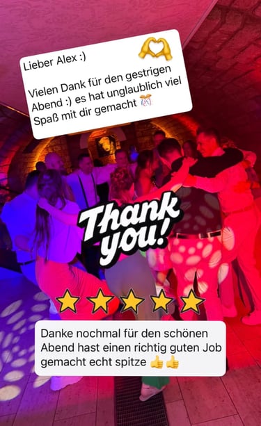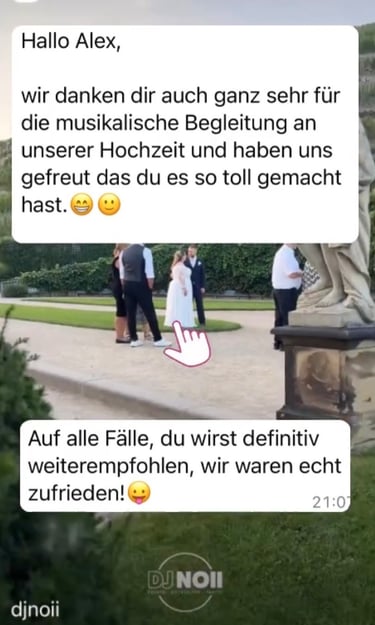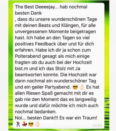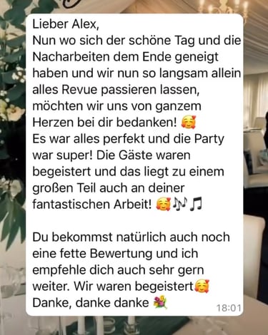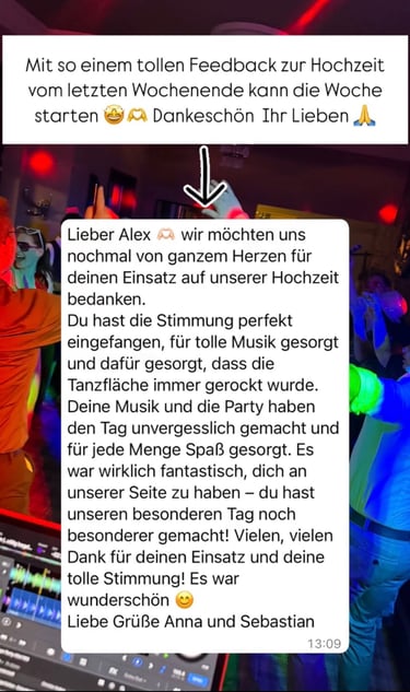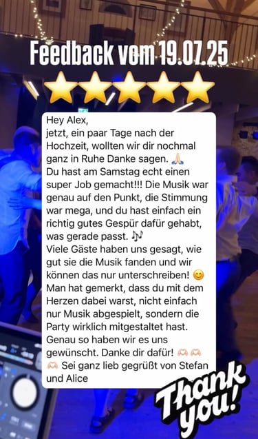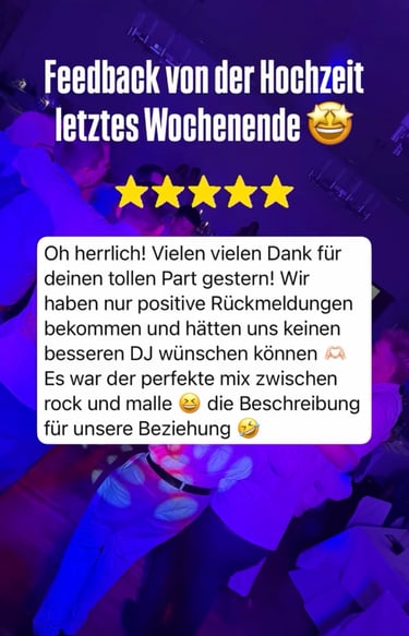Echte Stimmen von Brautpaaren und Gastgebern, die ich als DJ begleiten durfte.